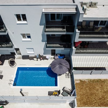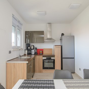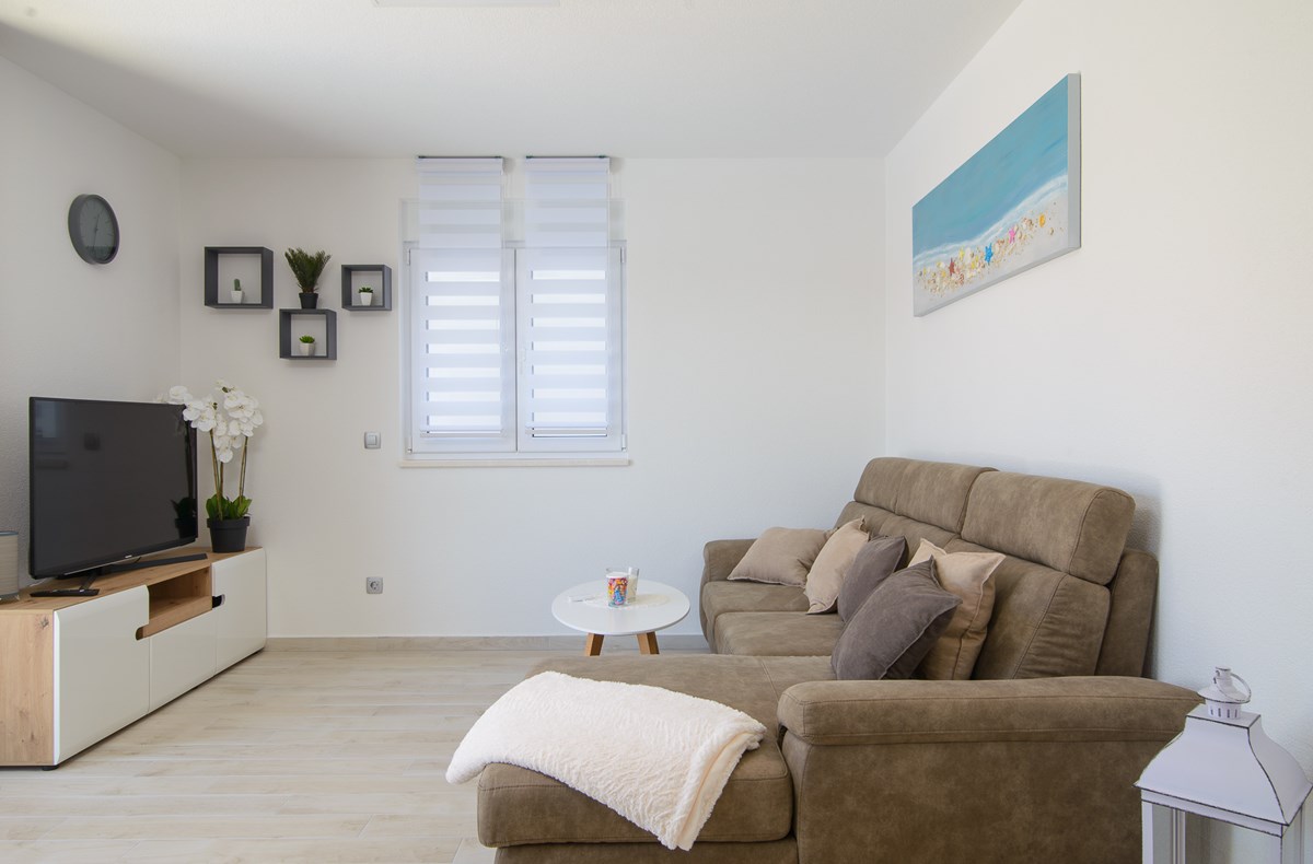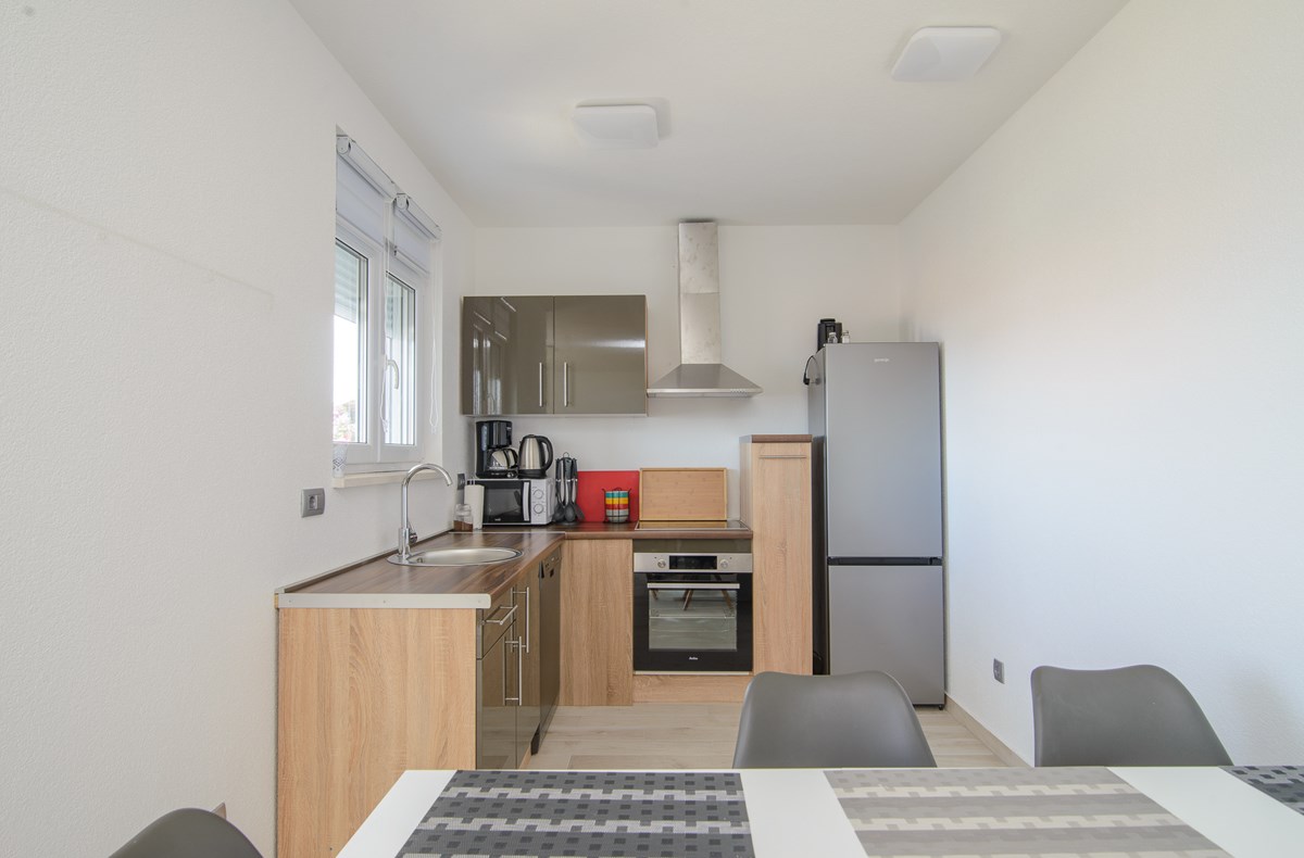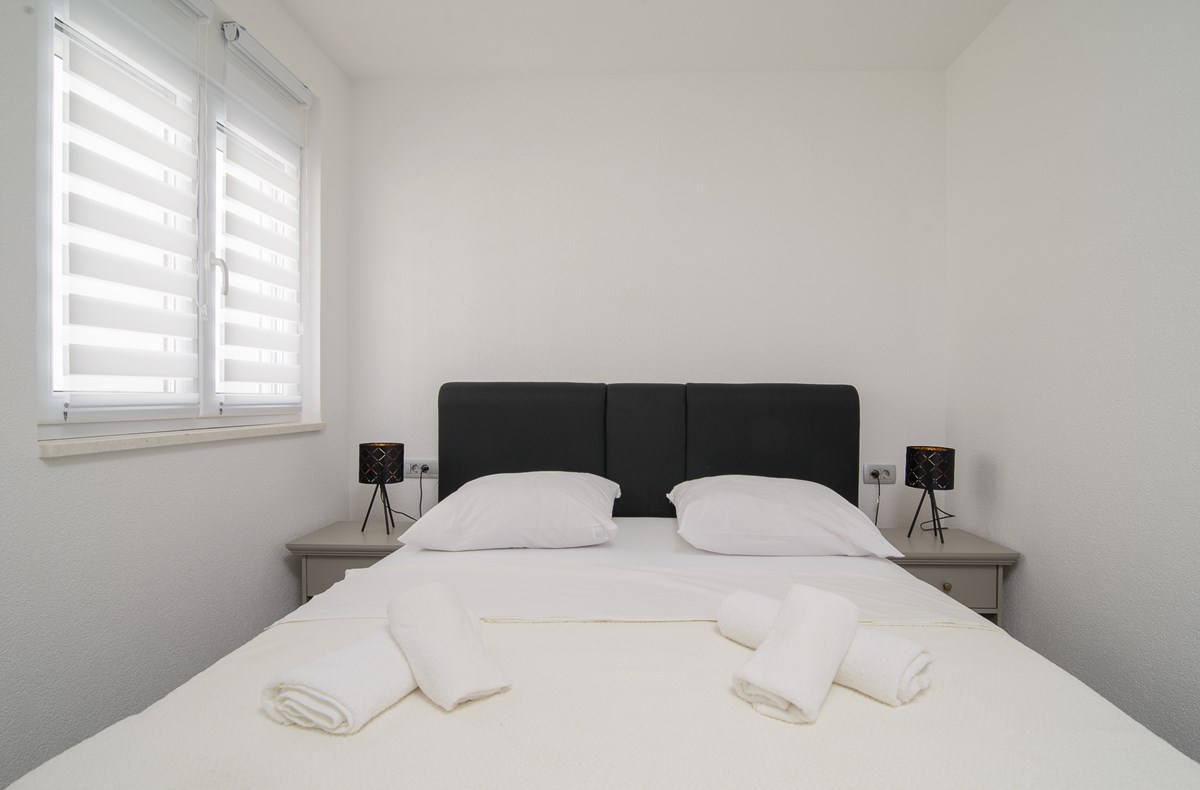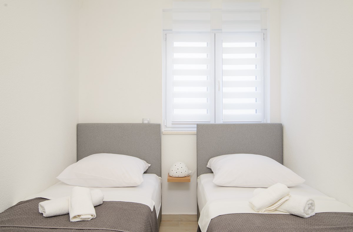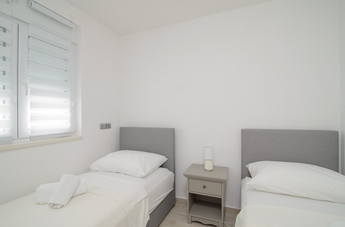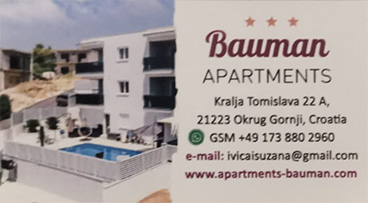 Apartments Bauman are located in Okrug Gornji, near Trogir, Čiovo peninsula. They are 400 m far away from the main beach, and just 2.5 km far from Trogir (drive to Trogir takes 10 minutes tops). The apartments are brand new.