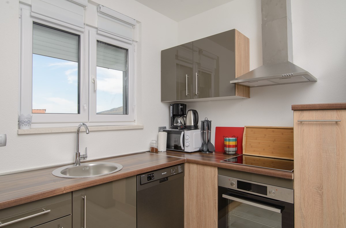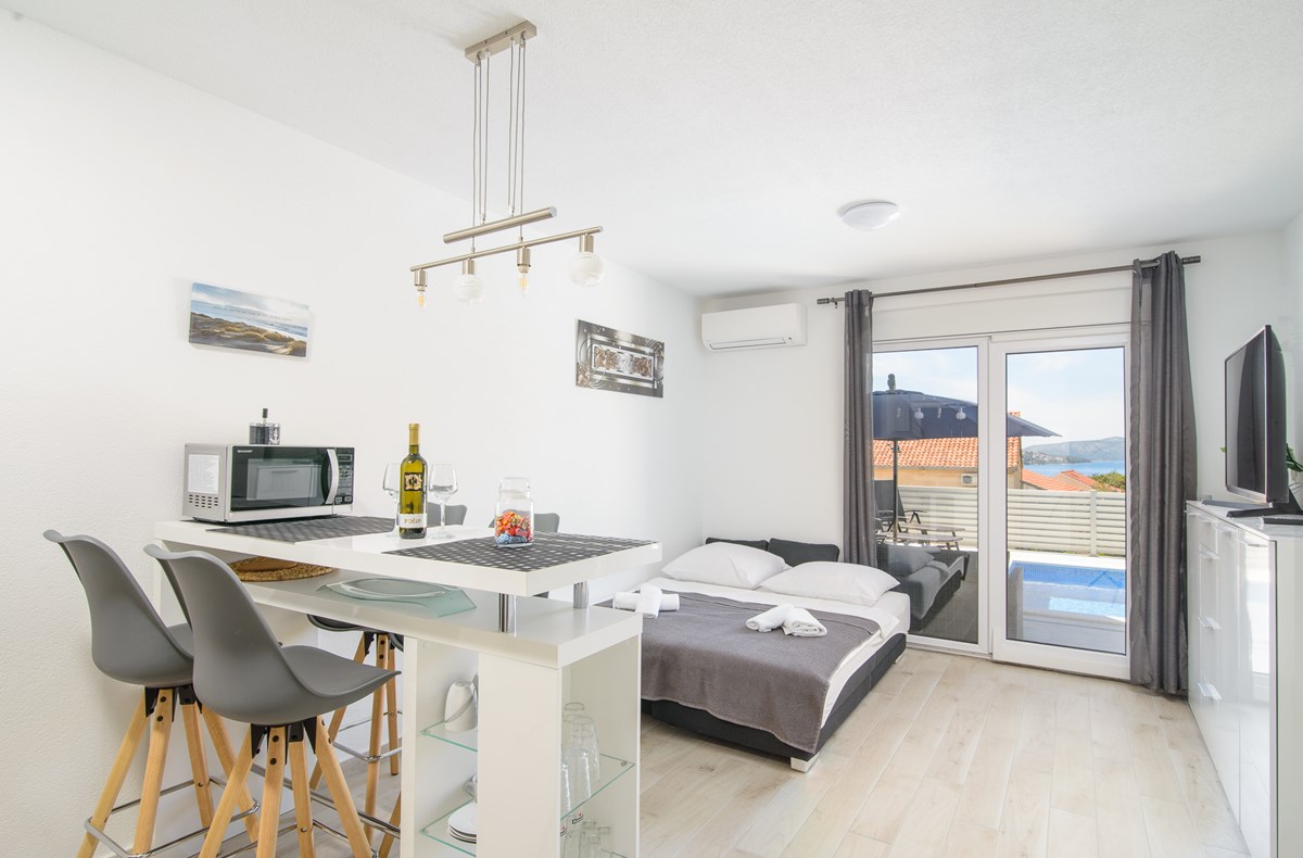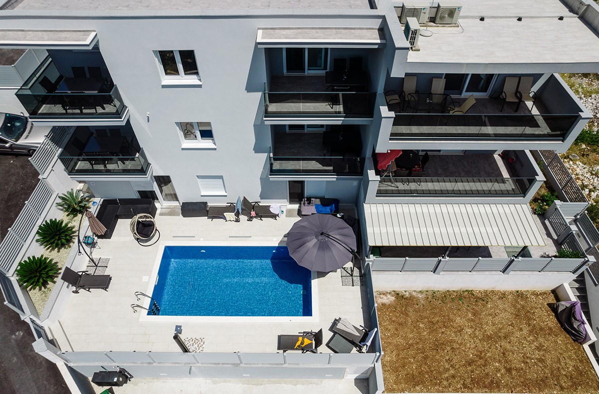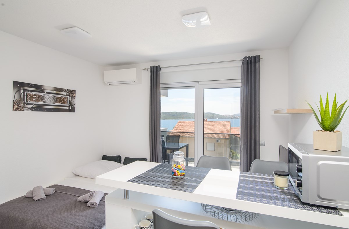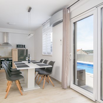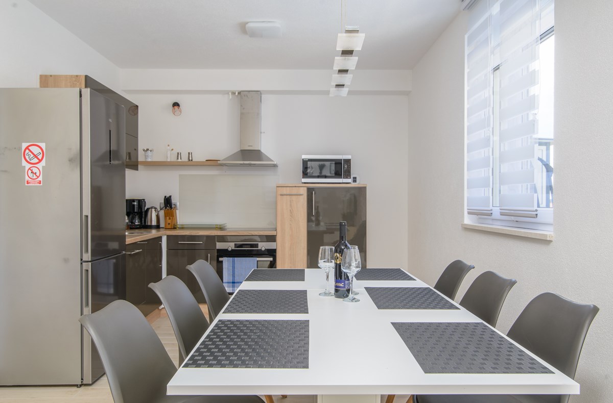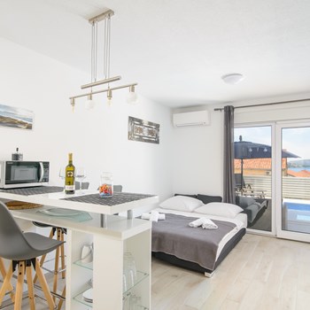 Apartments Bauman are located in Okrug Gornji, near Trogir, Čiovo peninsula. They are 400 m far away from the main beach, and just 2.5 km far from Trogir (drive to Trogir takes 10 minutes tops). The apartments are brand new.