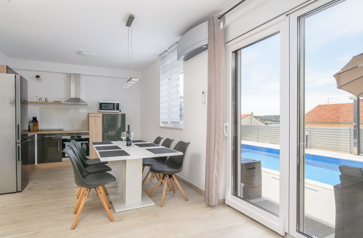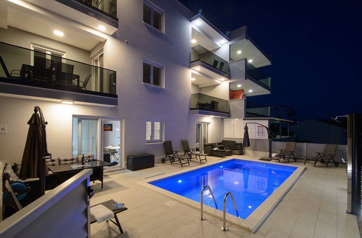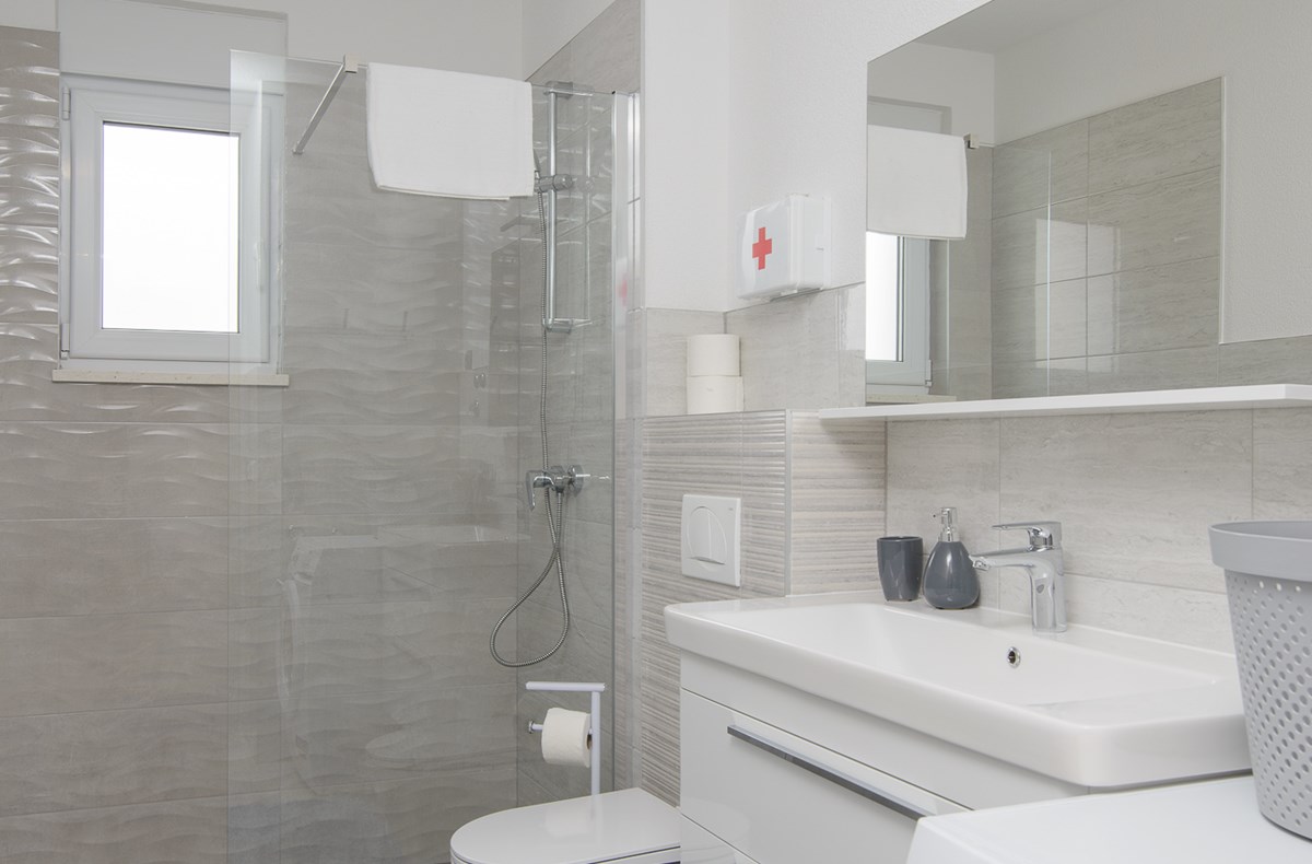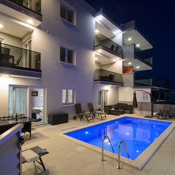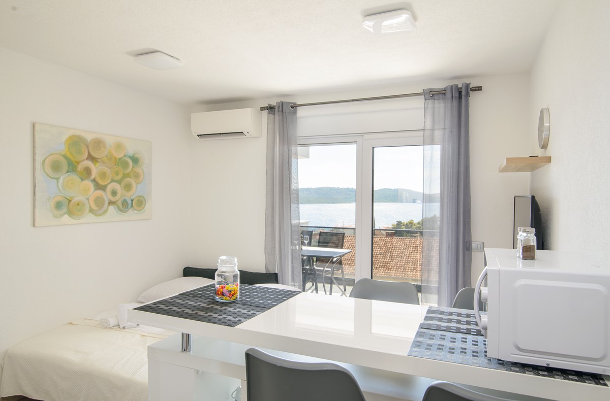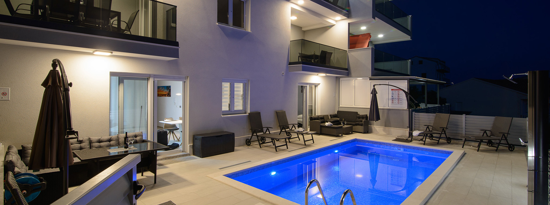 Apartments Bauman are located in Okrug Gornji, near Trogir, Čiovo peninsula. They are 400 m far away from the main beach, and just 2.5 km far from Trogir (drive to Trogir takes 10 minutes tops). The apartments are brand new.