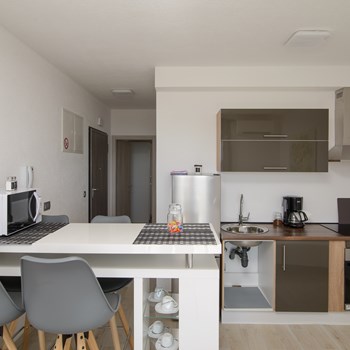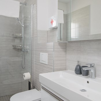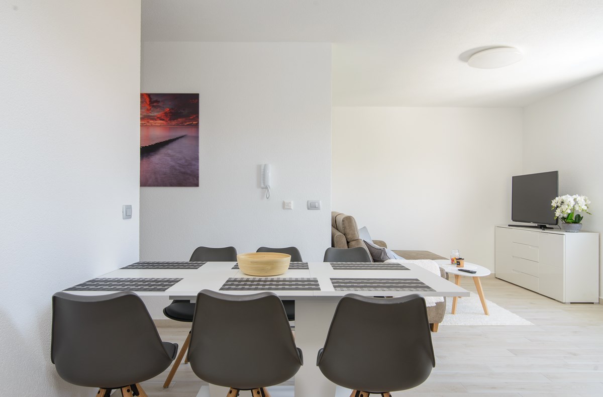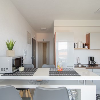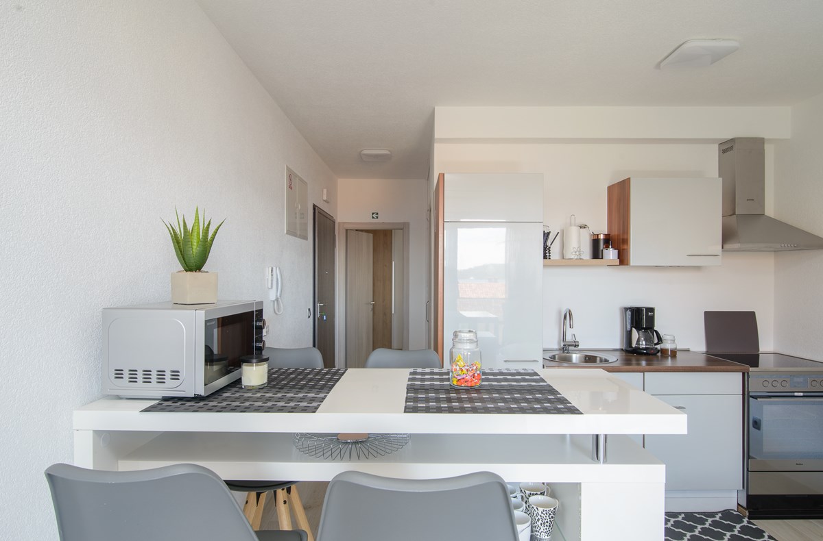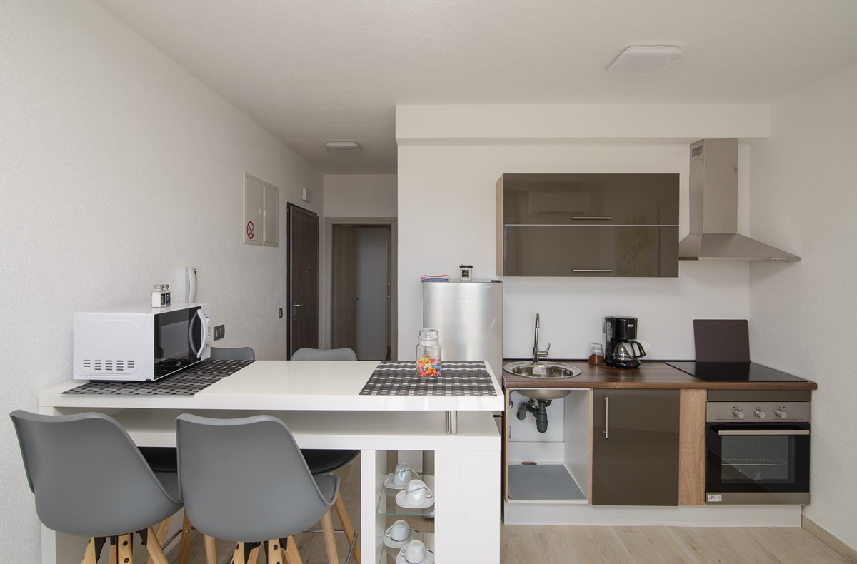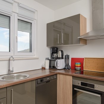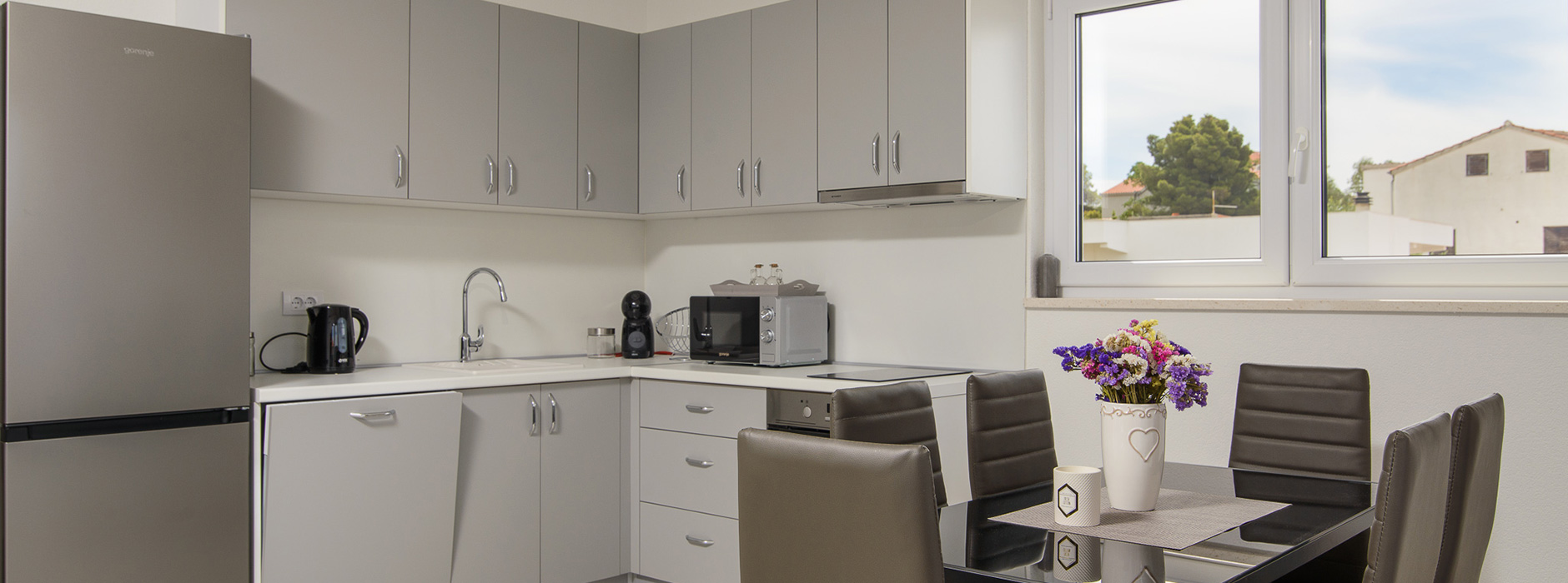 All apartments are fully equipped with AC, Wi-Fi internet, SAT+TV with Netflix access, laundry machine. Kitchen is also fully equipped with dishwasher, oven, microwave, fridge, coffee maker, all the necessary utensils. Apartments also include all the hygiene items (toilet paper, towels, blankets, pillows, dishes etc).