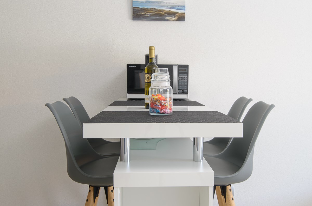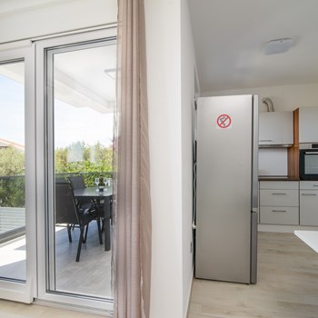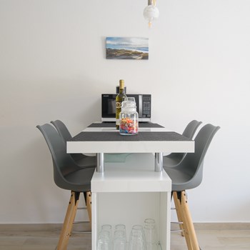 There is a parking place in front of the apartments for your car. All apartments have a balcony with a sea view.